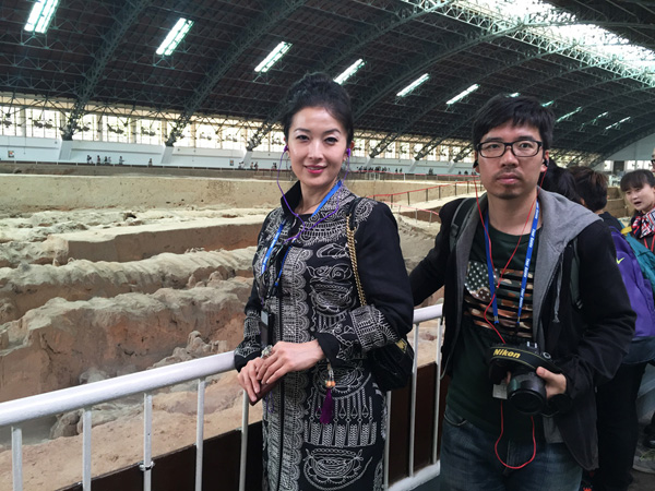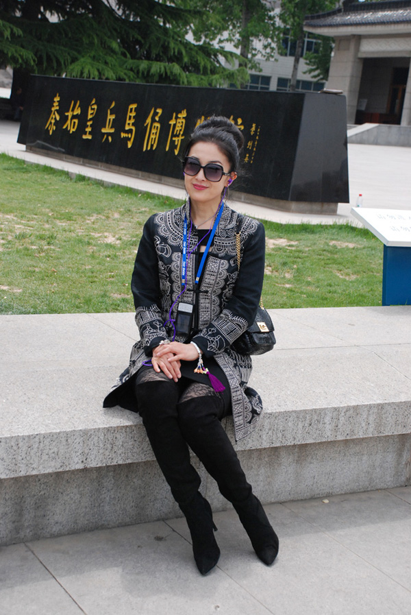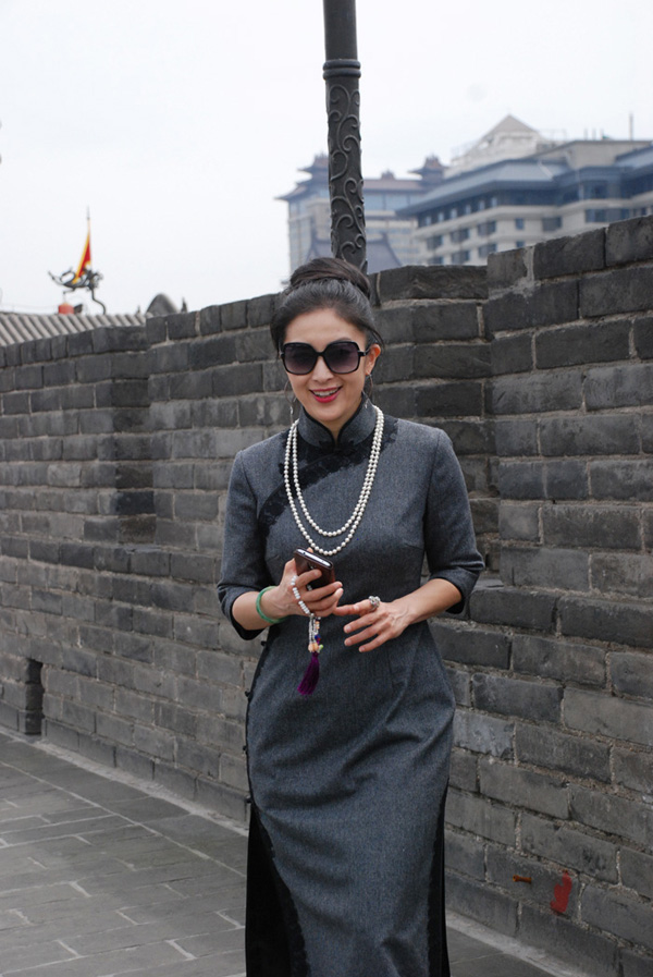 两位旗袍皇后巧遇帝王都 日前,旧金山古典美旗袍皇后籽苏抵达西安,在倾城网创始人木子李等人陪同下,先后参观了兵马俑、西安城墙、书院门、回民街、大雁塔及小雁塔(西安博物院)等地,留下美丽身影。在西安期间,籽苏与木子李应邀拜望了正在西安参加活动的中华旗袍馆馆长、唐颂旗袍品牌创始人唐光艳老师。 籽苏登上西安城墙 在秦始皇陵兵马俑 在西安鼓楼附近 品味羊肉泡馍 在风雅艺术馆 在西安博物院 在顺城巷 夜游大雁塔