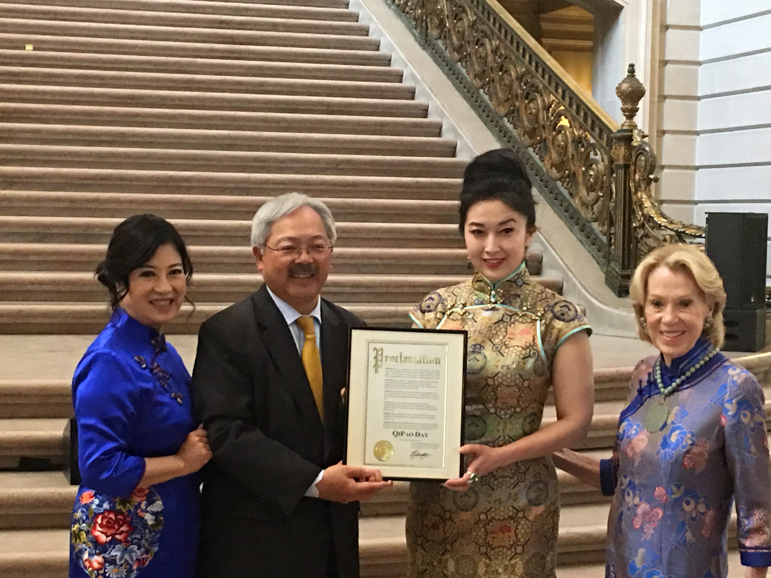 The San Francisco Mayor Ed Lee once said, QiPao is a type of traditional garment that expresses the unique style of Asian women. The first QiPao Culture Month took place in San Francisco in 2016. It showcased the cultural diversity of the city. Mayor Lee also announced April 14th to be the official SF Chinese QiPao Day.旧金山“中国旗袍日”。