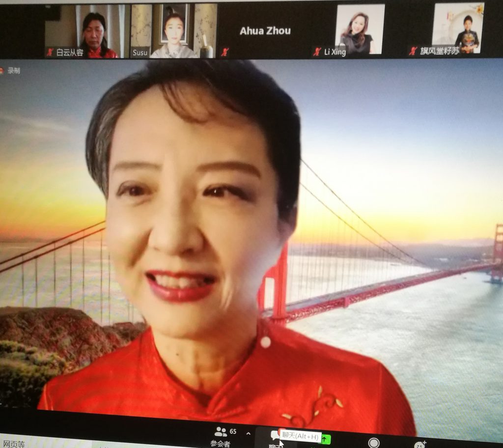 多年来,黄姝女士一直活跃在湾区的舞台上,参与并双语主持湾区多个品牌节目,被大众熟知并喜爱,在疫情期间的全球公益讲堂上也有她靓丽的身影。本场云诗歌下午茶朗诵活动中,她温婉、娴熟的主持语言技艺,得到了线上观众和主办方的一致好评。